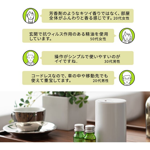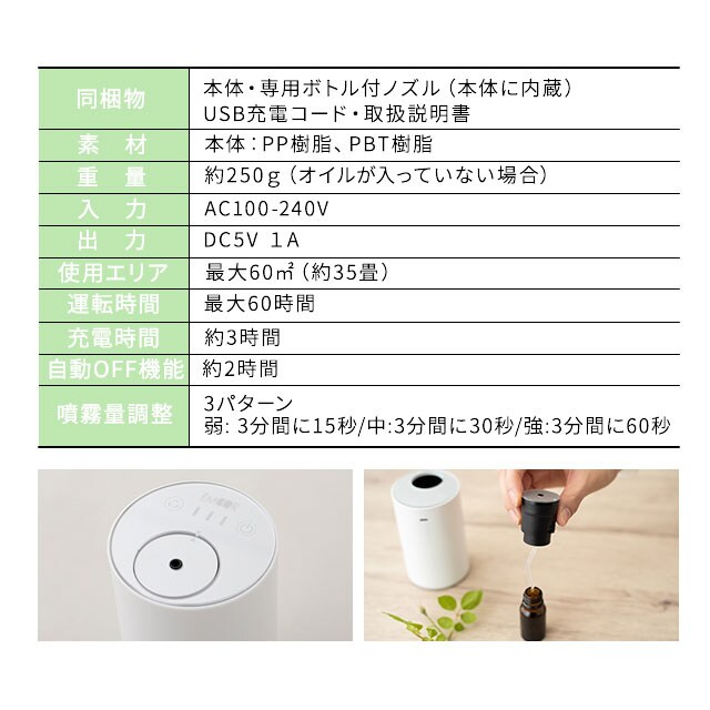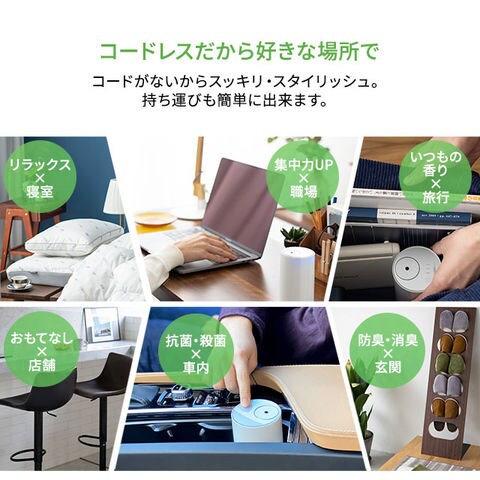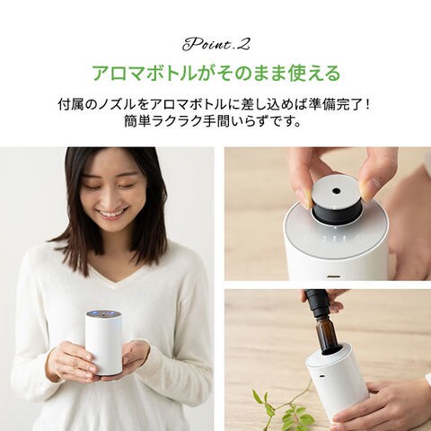アロマディフューザー ネブライザー 水を使わない コードレス USB 充電式 卓上 コンパクト 軽量 入れるだけ エッセンシャルオイル 精油 アロマ 香り 癒し 車 好きな場所で使える インテリア 北欧 シンプル ナチュラル おしゃれ かわいい ギフト 送料無料 花粉特集