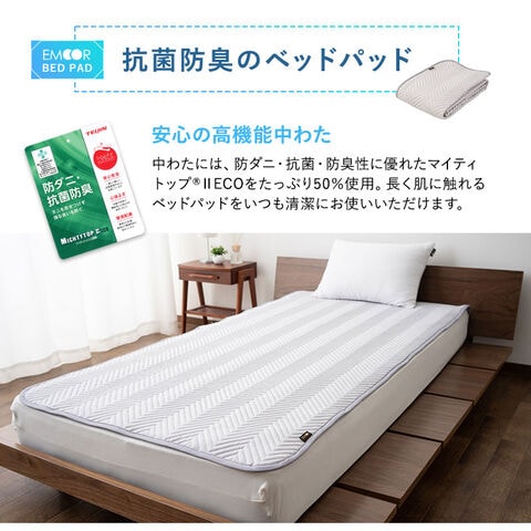 敷きパッド ベッドパッド パッド 洗えるベッドパッド セミシングル シングル セミダブル ダブル クイーン 抗菌防臭 抗菌 防臭 丸洗い 100×200cm 日本製 国産 敷パッド bed pad ウォッシャブル 速乾 洗濯洗い可 洗濯可 洗える 四隅ゴムバンド付き 新生活 エムール