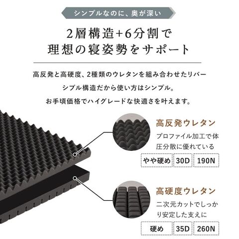 | 素材 | ■カバー ポリエステル、樹脂綿(3層ニット生地) ■中袋 ポリエステル100%(メッシュ生地) ■中材 プロファイル加工:高反発ウレタン 30D/190N (厚さ:約5cm) 2次元カット加工:高硬度ウレタン 35D/260N (厚さ:約5cm) |