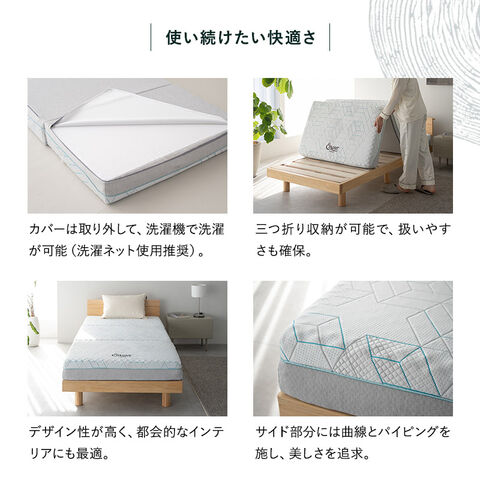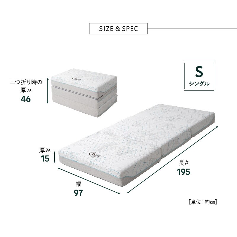 | サイズ | シングルサイズ:約幅97×奥行195×厚さ15cm (折りたたみ時:約幅97×奥行66×厚さ46cm) |