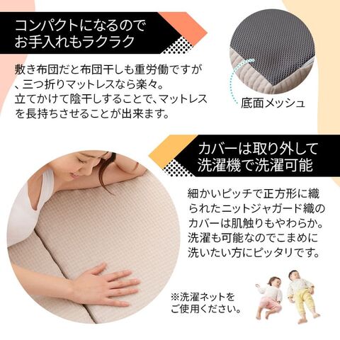 | お手入れ方法 | アウターカバー:ご家庭の洗濯機でお洗濯ができます。 ※洗濯ネットをご使用ください。 ※到着後はお早めに開封下さい。 ※到着後、温度や環境により、復元にお時間がかかる場合がございます。 |