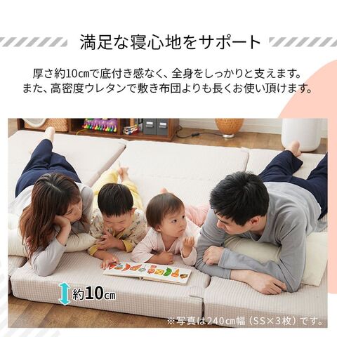 マットレス ワイドキング 幅240cm 連結 ファミリー 三つ折り 折りたたみ 10cm 極厚 高反発 体圧分散 大きい 大きいサイズ 子供 家族 5人 4人 3人 来客用 3つ折り ウレタンマットレス 敷き布団 敷布団 布団 コンパクト 収納 洗える 通気性 腰 寝相 隙間 ズレ エムール