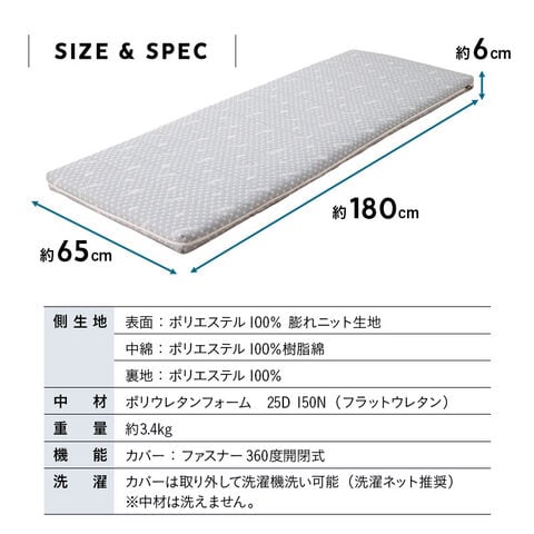 サイズ コンパクトショート:約幅65×奥行180×厚さ6cm