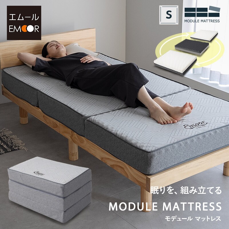 マットレス シングル 極厚 14cm 三つ折り 折りたたみ カスタマイズ可能 調節可能 2層構造 高反発 高弾性 ウレタン かため やわらかめ 腰痛 肩こり 体圧分散 洗える 通気性 フィット性 3つ折り 収納 コンパクト ベッド 布団 モデュール 北欧 新生活 送料無料 エムール