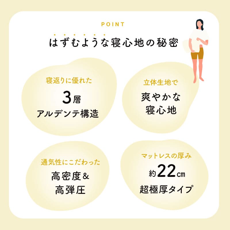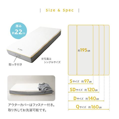 | サイズ | シングルサイズ:約幅97×奥行195×厚さ22cm |