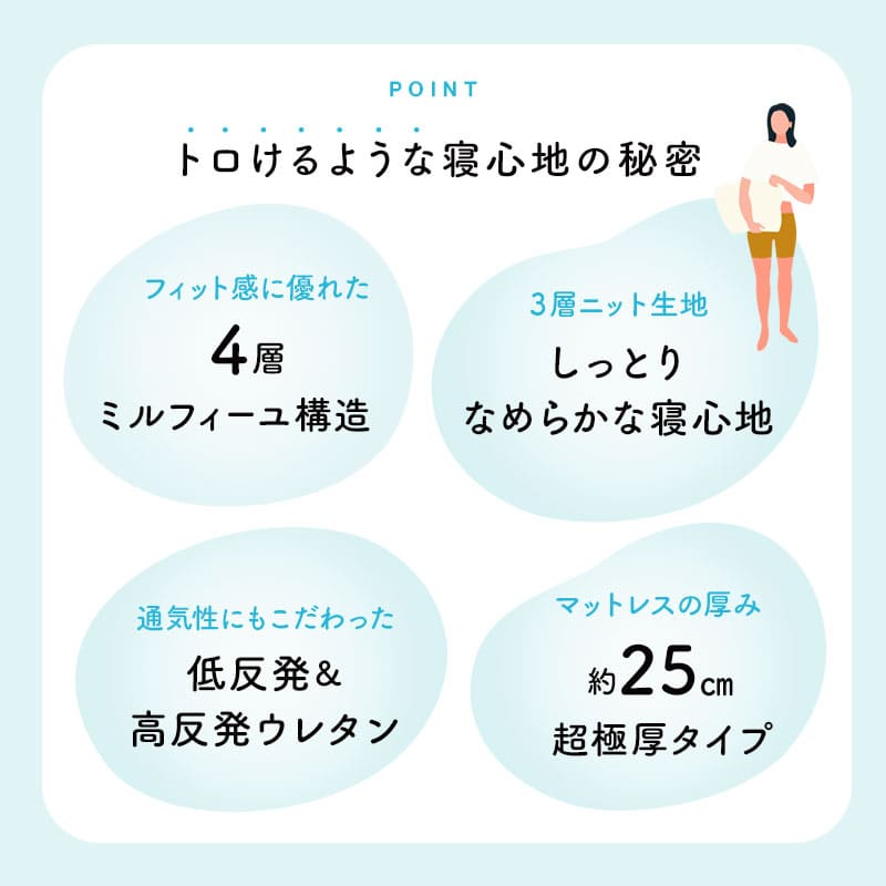| サイズ | シングルサイズ:約幅97×奥行195×厚さ25cm |