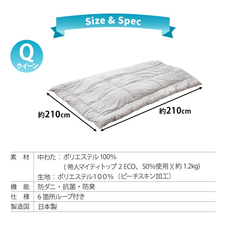 中わた:ポリエステル100%(帝人マイティトップ®ⅡECO 50%使用) 約1.2kg