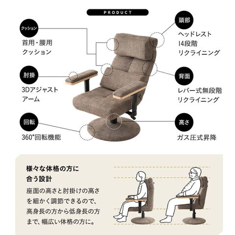 回転高座椅子 リクライニングチェア パーソナルチェア 疲れにくい 高齢者 椅子 おばあちゃん 肘付き 高さ調節 腰痛 回転式 クッション付き 一人用 ハイバック 肘掛け 肘置き お年寄り シニア 介護 おしゃれ 花以外 母の日 父の日 敬老の日 ギフト 送料無料 エムール