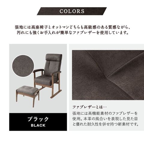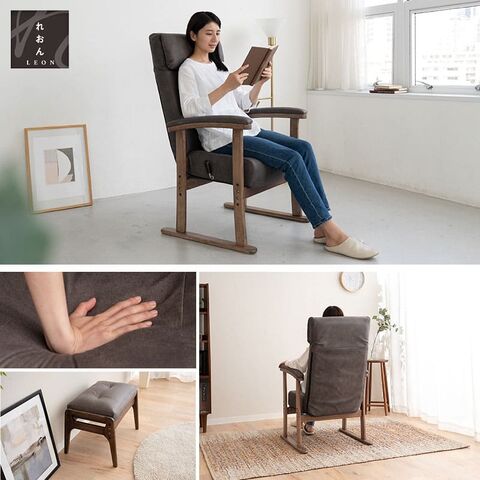 ポケットコイル高座椅子 オットマンスツール 2点セット プレミアムタイプ リクライニングチェア ファブレザー 本革調 天然木 ハイバック レバー式 高さ調節可能 角度調節可能 腰痛対策 むくみ防止 軽量