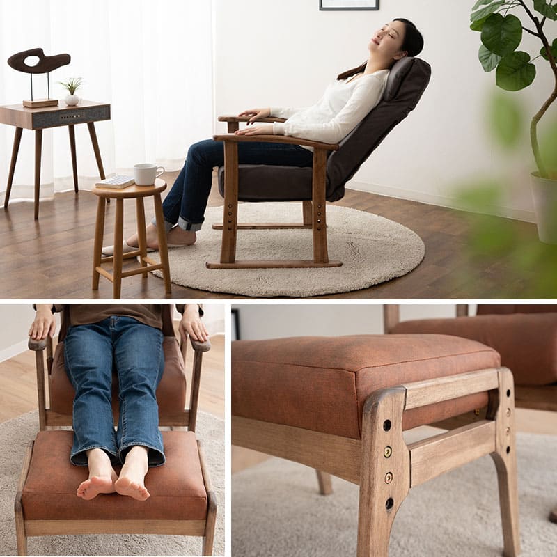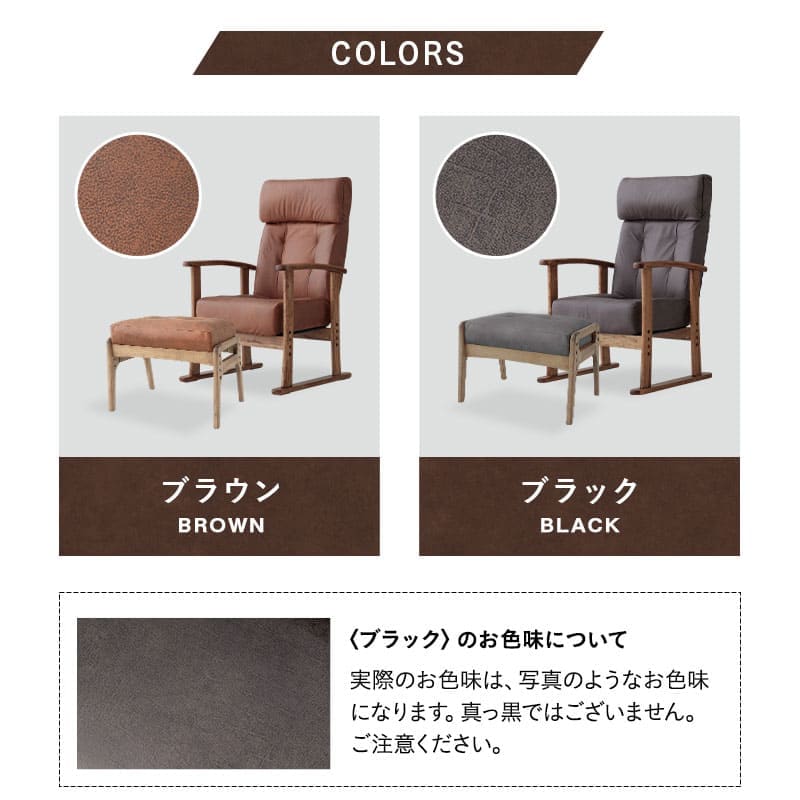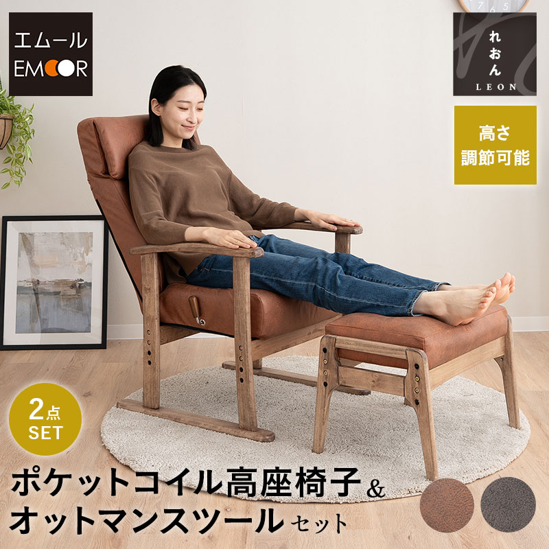 リクライニングチェア 高座椅子 オットマン セット 高さ調節可能 ポケットコイル ファブレザー 肘付き スツール 腰痛 膝痛 むくみ パーソナルチェア 高齢者 椅子 ハイバック コンパクト 軽量 お年寄り 介護 おしゃれ れおん 母の日 父の日 敬老の日 送料無料 エムール