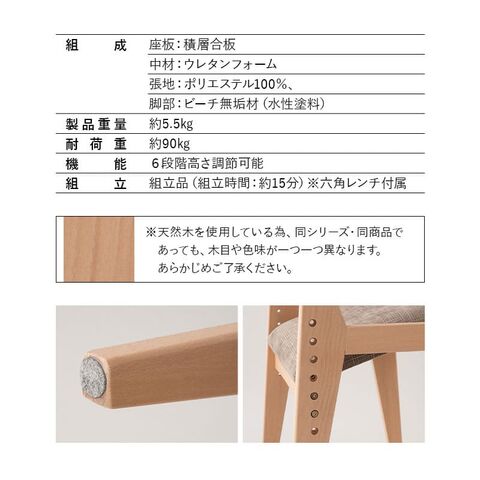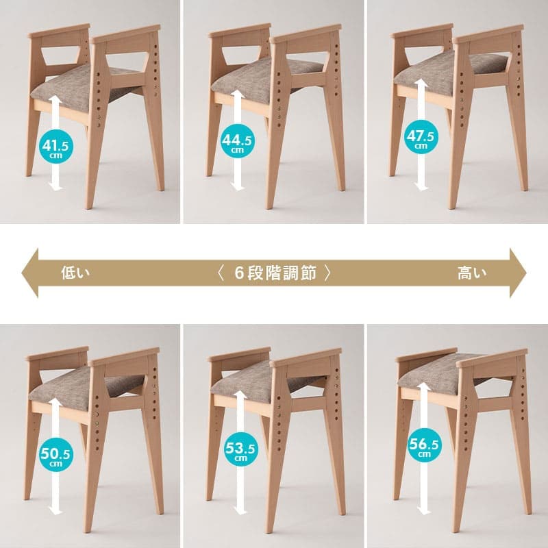 | 仕様 | 座面6段階高さ調節可能 肘掛け付き キズ防止フェルト付き |