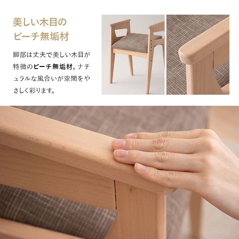 | 素材 | 肘/脚:ビーチ無垢材(水性塗装) シート:スチール、ポケットコイル、ウレタンフォーム クッション:ウレタンフォーム(モールド成形) 生地:ポリエステル100% |