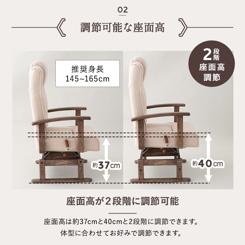 回転高座椅子 高座椅子 回転 リクライニングチェア 完成品 高齢者 椅子 安全ストッパー付き こたつ おばあちゃん 肘付き 高さ調節 腰痛 膝痛 介護 ポケットコイル パーソナルチェア 一人用 ハイバック 肘掛け 疲れにくい お年寄り 無地 おしゃれ 送