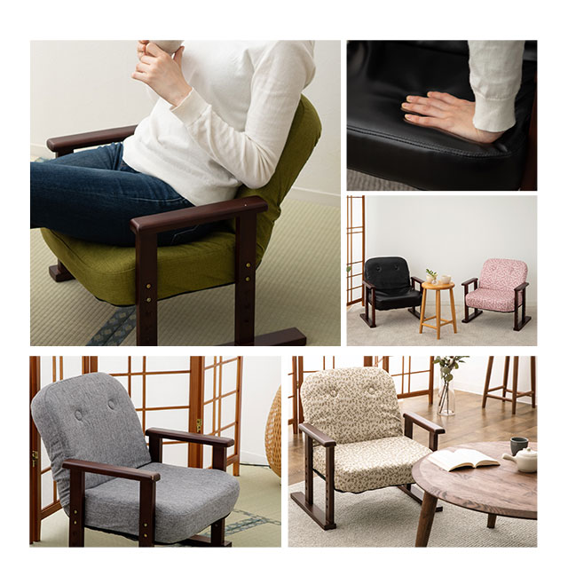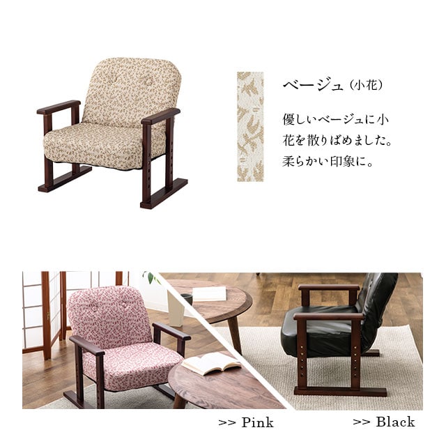 組立不要 すぐに使える 完成品 高座椅子 こころ リクライニング 角度 高さ 調節 肘付き チェア 贈り物 プレゼント 低め 座卓 こたつ 軽量 コンパクト 高座いす 高ざいす シニア 高齢者 介護 椅子 立ち座り 腰痛 膝 座椅子 肘掛け 小花 レザー 【送料無料】 エムール父の日特集