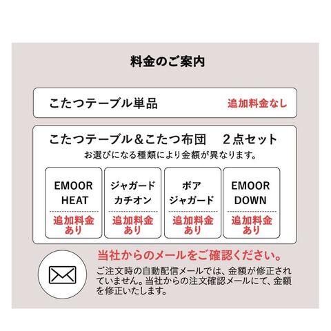 | 製造国 | こたつテーブル:インドネシア こたつ掛け布団:中国 |