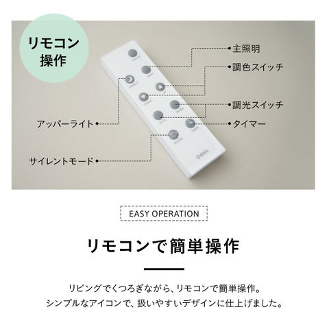 | 仕様 | 調光10段階(主照明) 調光3段階(アッパーライト) 調色5段階 タイマー機能 メモリー機能 サイレントモード |