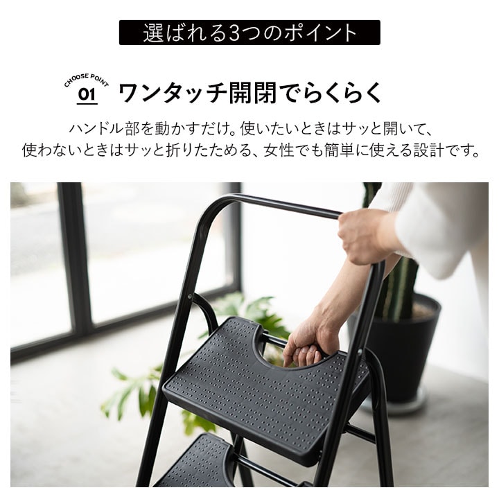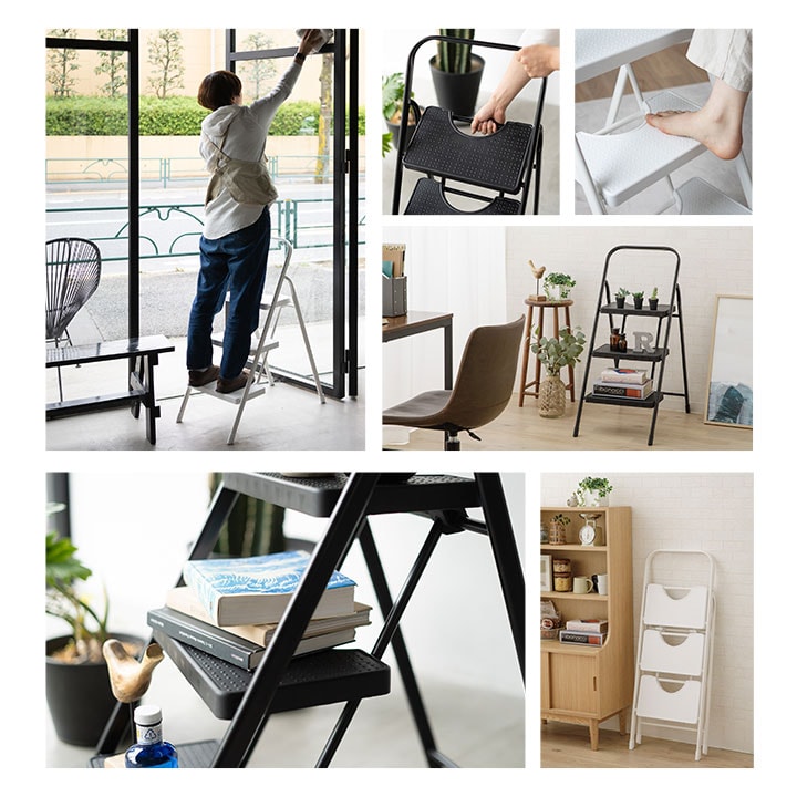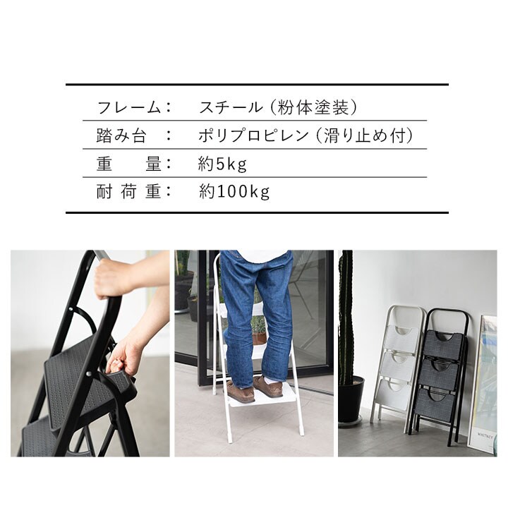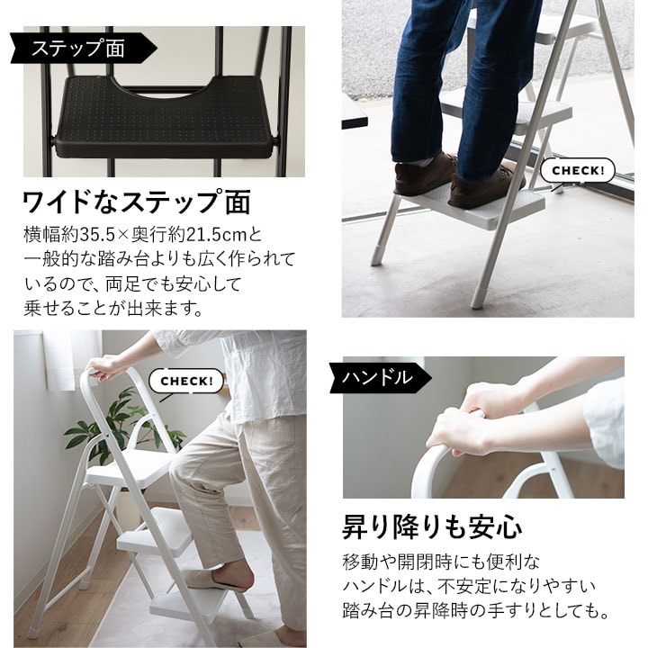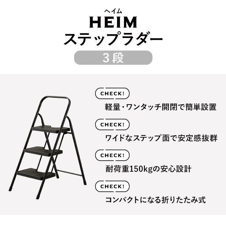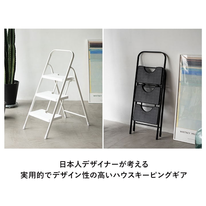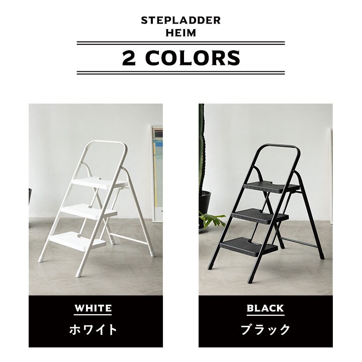 脚立 折りたたみ 踏み台 3段 HEIM フォールディングステップ 軽量 おしゃれ 収納 耐荷重150kg オフホワイト ブラック 梯子 はしご ステップラダー ステップ台 ステップスツール ステップチェア 折りたたみステップ 折り畳み 掃除 洗車 北欧 送料無料 エムール