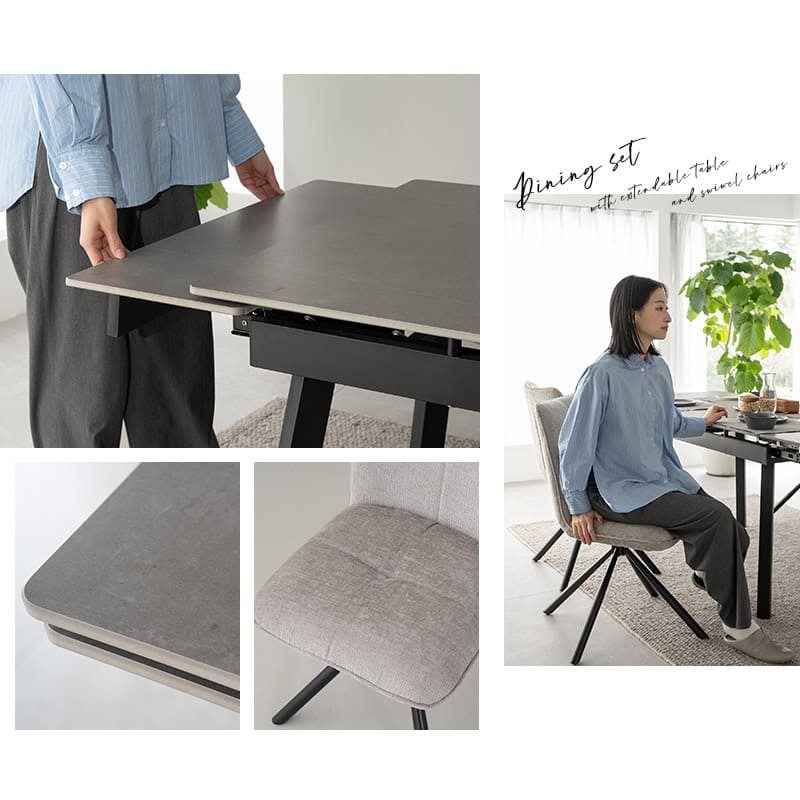 ダイニングテーブルセット 5点セット 幅120cm 伸縮式 4人掛け 長方形 ダイニングセット 食卓 ダイニング テーブル チェア 4脚 4人用 セラミック 石目調 回転 ファブリック 椅子 机 リビング