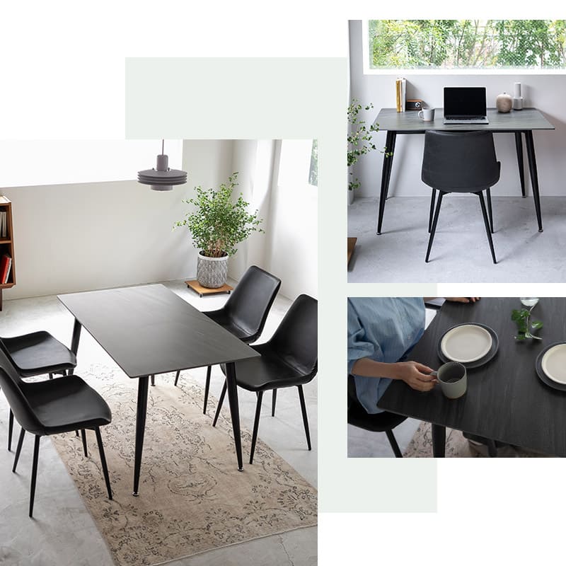 ダイニングテーブル 幅120cm コンパクト セラミック 4人掛け 単品 テーブル 食卓 グレー ブラック 黒 石目調 長方形 4人用 食卓テーブル デスク 机 ダイニング リビングダイニング 北欧 モダン
