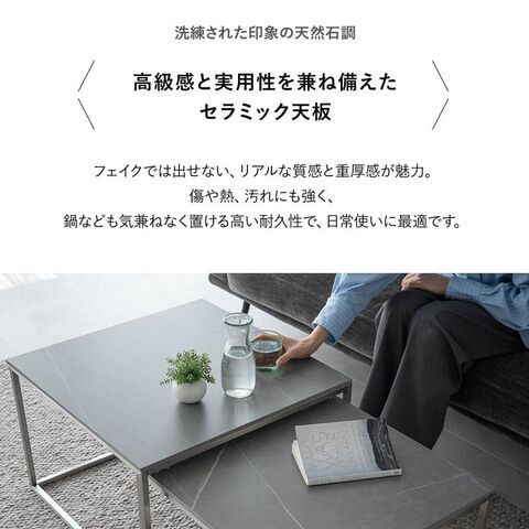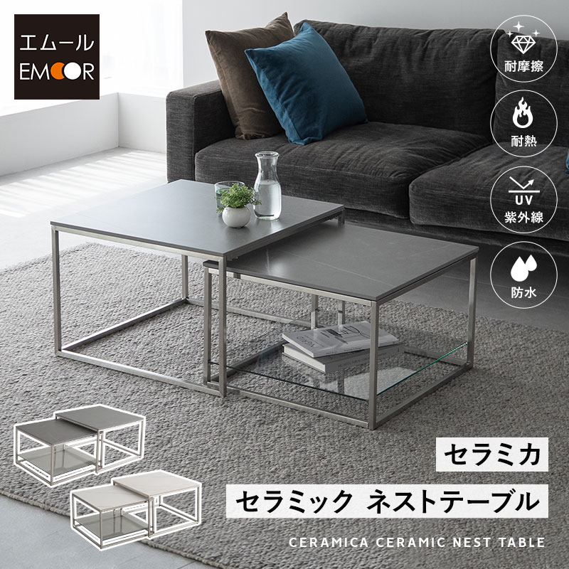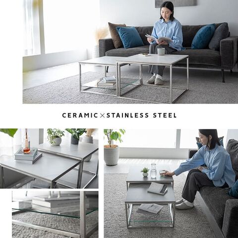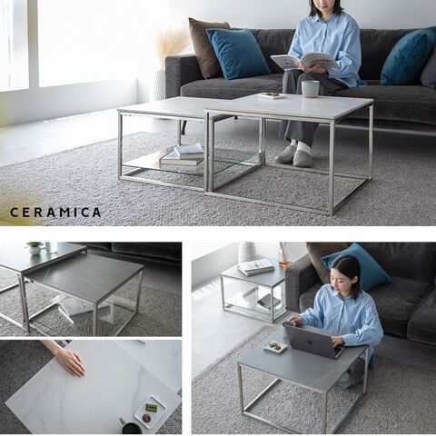 ネストテーブル 幅60cm セラミック 単品 棚付き テーブル 食卓 グレー ホワイト 白 石目調 正方形 角型 四角 センターテーブル ローテーブル サイドテーブ テーブル 机 コンパクト 収納 大小 伸縮 リビング 来客 北欧 モダン おしゃれ セラ