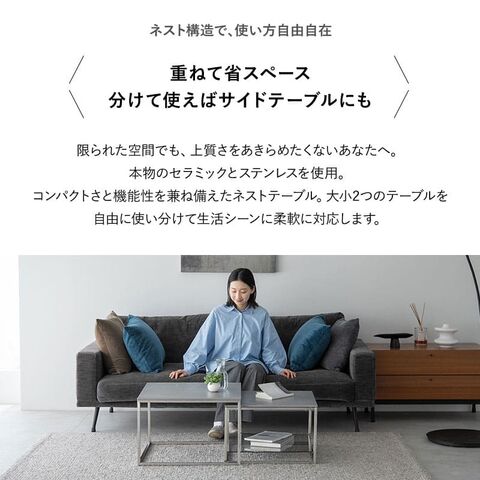 ネストテーブル 幅60cm セラミック 単品 棚付き テーブル 食卓 グレー ホワイト 白 石目調 正方形 角型 四角 センターテーブル ローテーブル サイドテーブ テーブル 机 コンパクト 収納 大小 伸縮 リビング 来客 北欧 モダン おしゃれ セラのレビュー