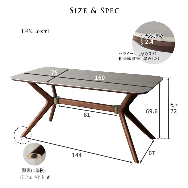 ダイニングテーブルセット 5点セット 幅160cm 4人掛け セラミック 角型 スクエア ダイニングセット 食卓 ダイニング テーブル チェア 4人用 ファブレザー レザー調 木製 天然木 椅子 机 リビング 北欧 おしゃれ living&dining セラーノ 新生活 送料無料 エムール