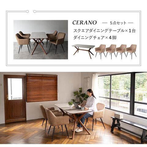 ダイニングテーブルセット 5点セット 幅160cm 4人掛け セラミック 角型 スクエア ダイニングセット 食卓 ダイニング テーブル チェア 4人用 ファブレザー レザー調 木製 天然木 椅子 机 リビング 北欧 おしゃれ living&dining セラーノ 新生活 送料無料 エムールのレビュー