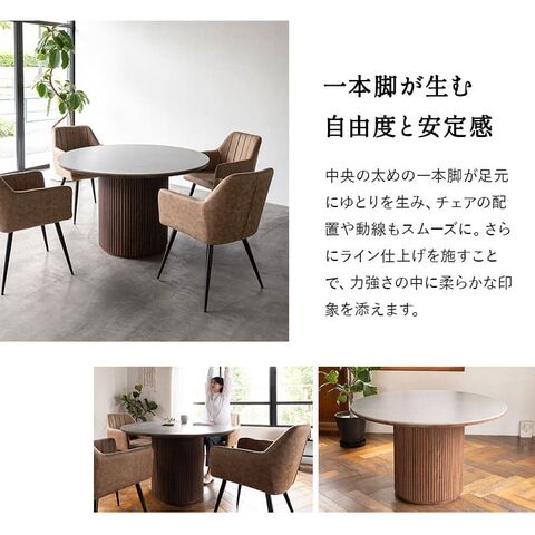 ダイニングテーブル 直径114cm セラミック 円形 丸型 ラウンド 4人掛け 単品 テーブル 食卓 木製 石目調 ストーン調 木目調 4人用 食卓テーブル 机 ダイニング リビングダイニング 北欧 モダン ヴィンテージ おしゃれ living&dining エノア 新生活 送料無料 エムール