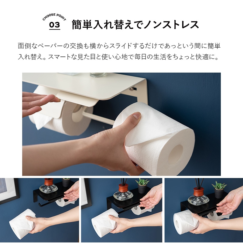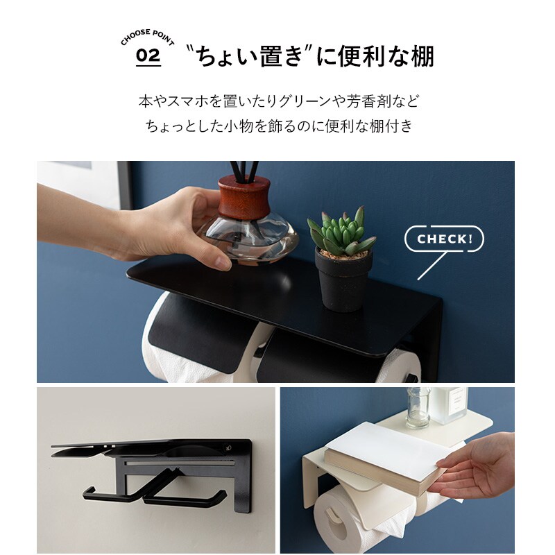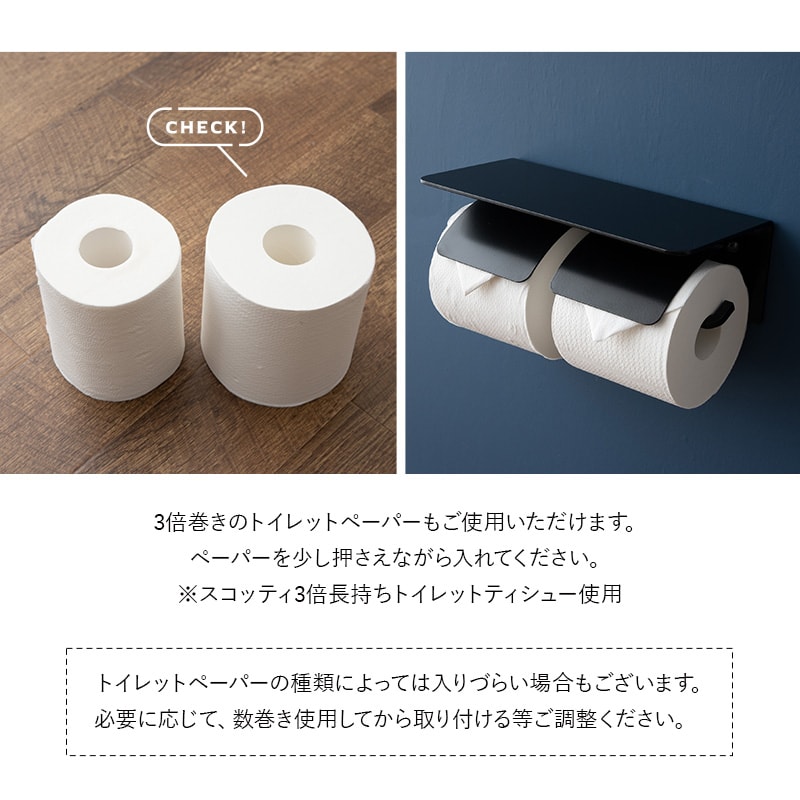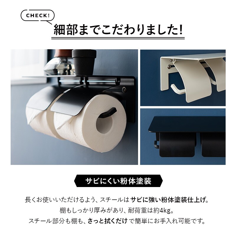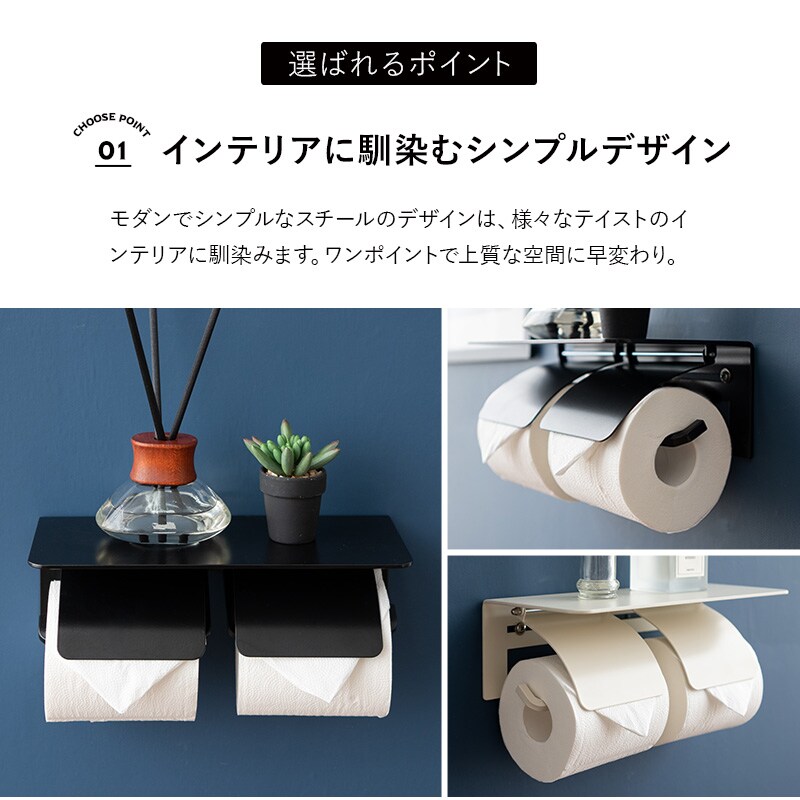 トイレットペーパーホルダー 2個用 2連 二連 ダブル 3倍巻き 棚付き スチール おしゃれ トイレ 手洗 収納 トイレ収納 トイレットペーパー 北欧 トイレラック スリム ペーパーホルダー ストッカー ラック ホルダー ブラック ホワイト 黒 白 紙巻器 送料無料 エムールのレビュー