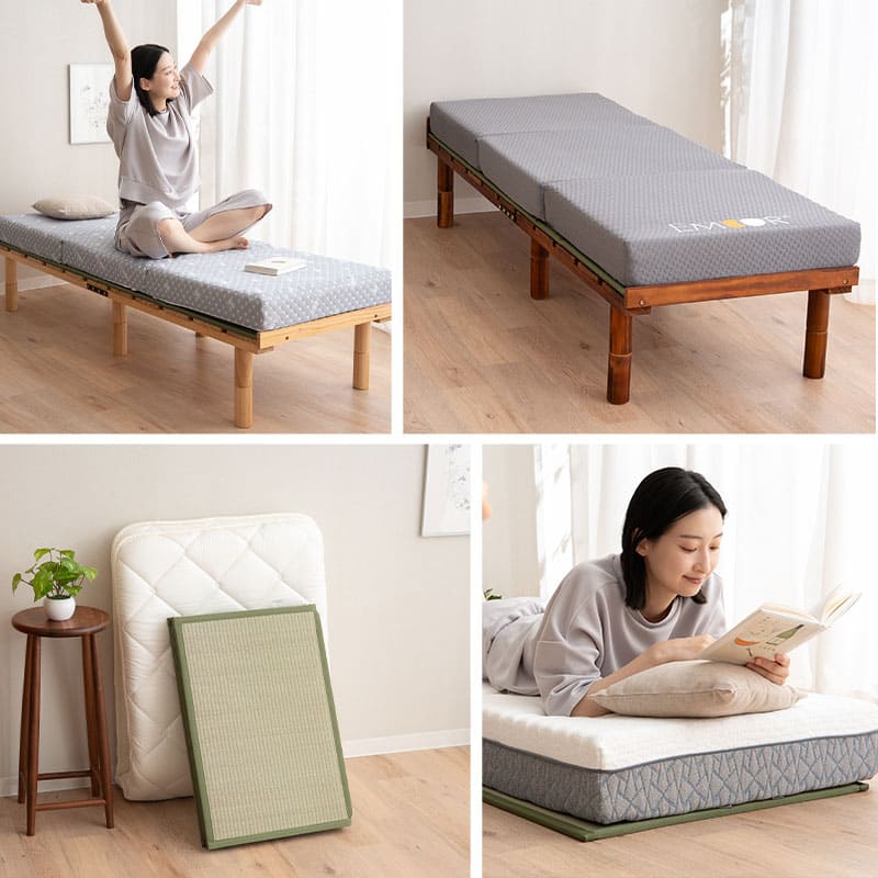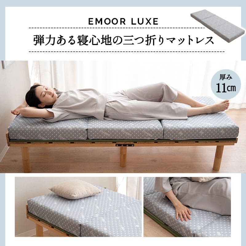 畳マット付き デイベッド 3点セット スリム コンパクト すのこベッド ベッドフレーム 木製 天然木 高さ調節 畳マットレス ごろ寝マットレス コンパクトマットレス 三つ折り 3つ折り 折りたたみ セット 賃貸 狭小住宅 子供部屋 新生活 一人暮らし 送料無料 エムール