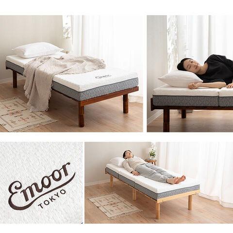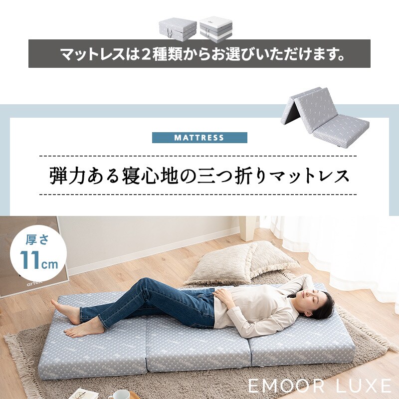 省スペース ベッド&マットレス セット セミシングルショート すのこベッド 3つ折り 折りたたみ マットレス スリム コンパクト デイベッド ベッドフレーム 木製 天然木 高さ調節 ごろ寝 小さい サイズ 三つ折り 狭小住宅 子供部屋 新生活
