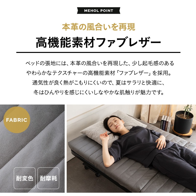 折りたたみベッド シングル 組立不要 完成品 マットレス付 キャスター付 リクライニング ファブレザー スマート コンパクト 収納 介護施設 ホーム 折りたたみ 折り畳み 簡易 ハイ ベッド ベット 高反発 マットレス 北欧 おしゃれ 一人暮らし ギフト 送料無料 エムール