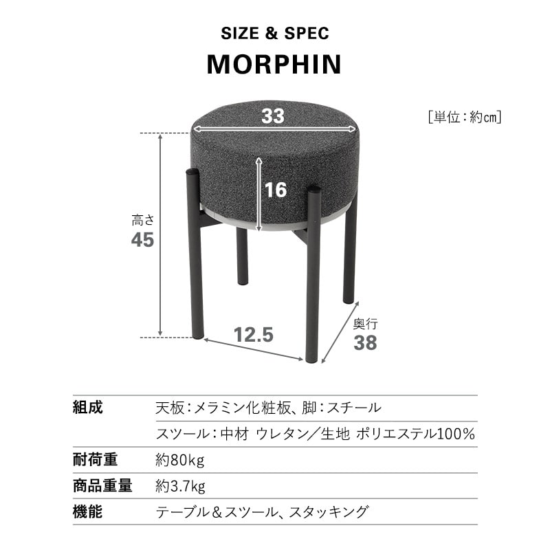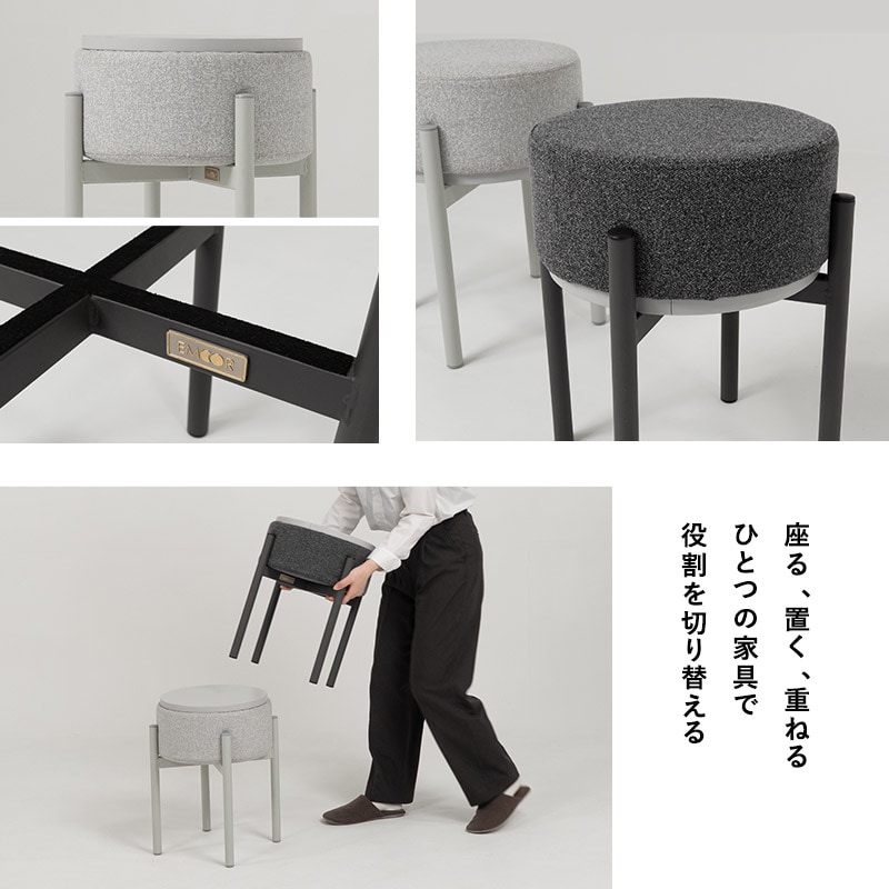 スツール サイドテーブル 円形 完成品 リバーシブル スタッキング 積み重ね 軽量 コンパクト 省スペース 収納 オットマン ナイトテーブル ラウンド テーブル デスク 机 椅子 チェア リビング ダイニング 寝室 来客用 北欧 おしゃれ 新生活 MORPHIN 送料無料 エムール