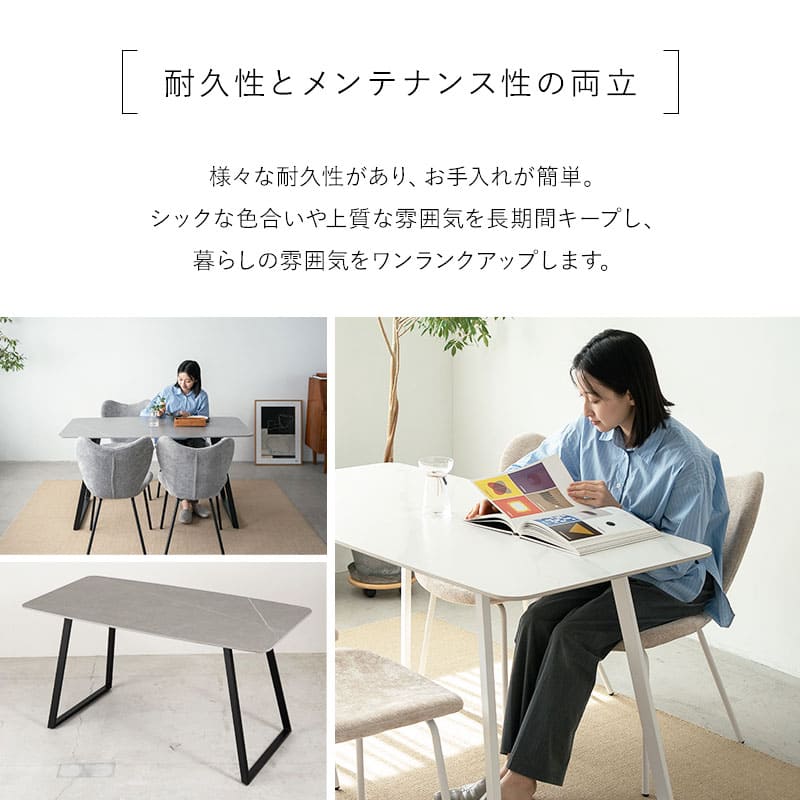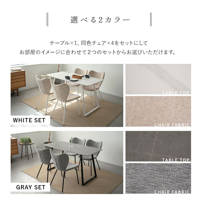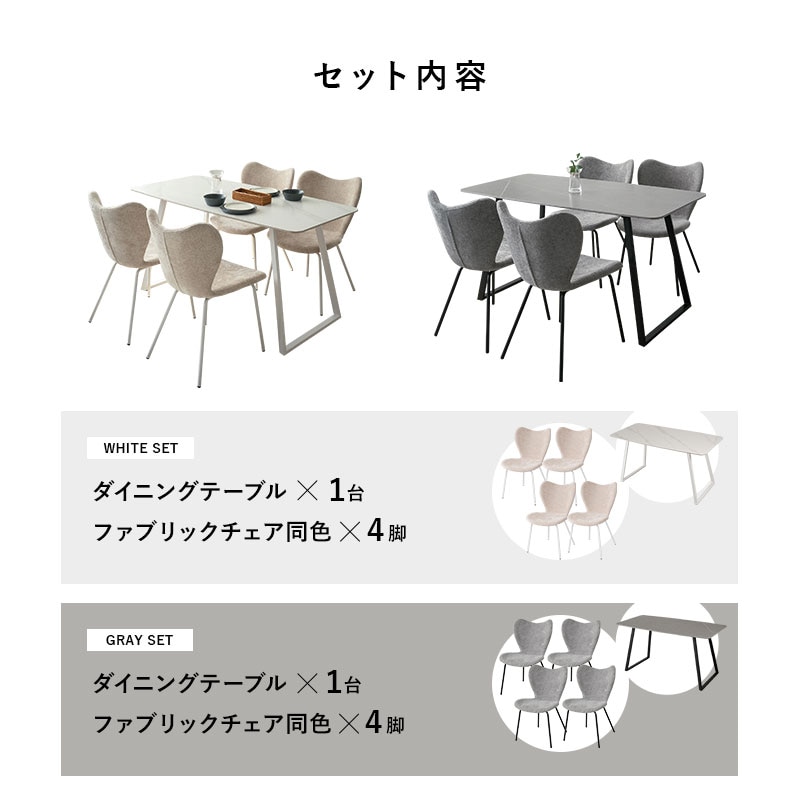 セラミックテーブル&ファブリックチェア ダイニング5点セット