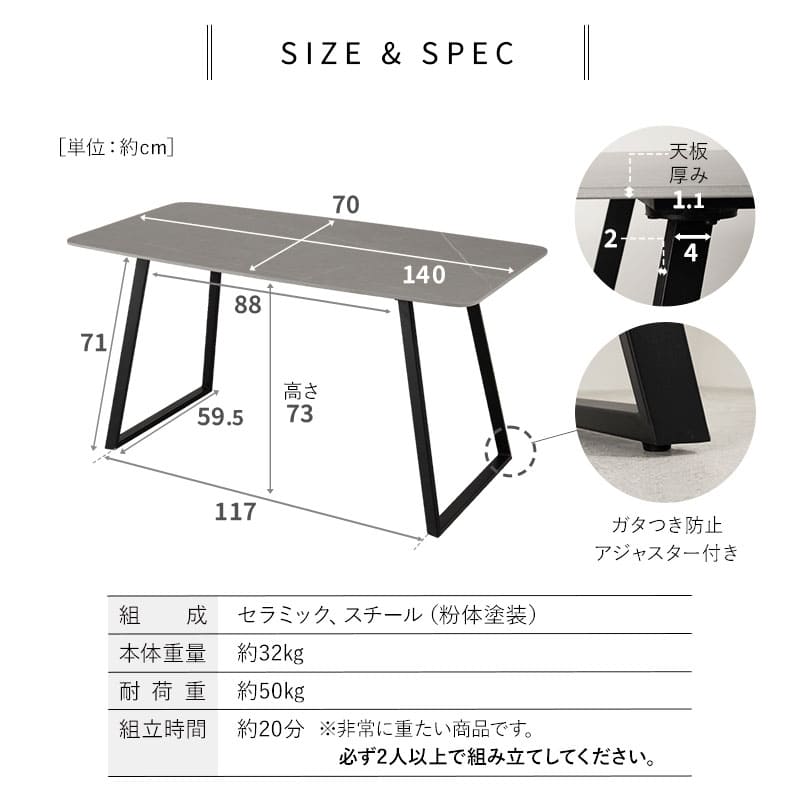 セラミックテーブル ■サイズ