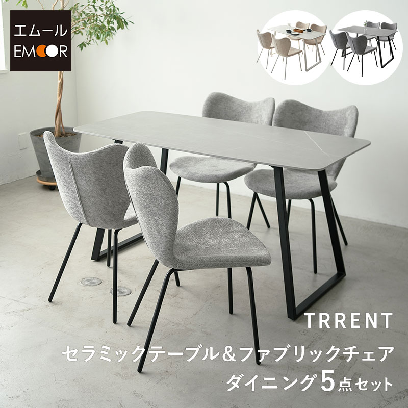 ダイニングテーブルセット 5点セット 幅140cm 4人掛け 長方形 ダイニングセット 食卓 ダイニング テーブル チェア 4脚 4人用 セラミック 石目調 ファブリック 回転 椅子 机 リビング 白家具 北欧 モダン おしゃれ living&dining トレント 新生活 送料無料 エムール