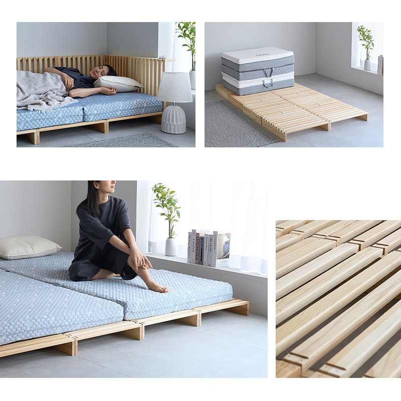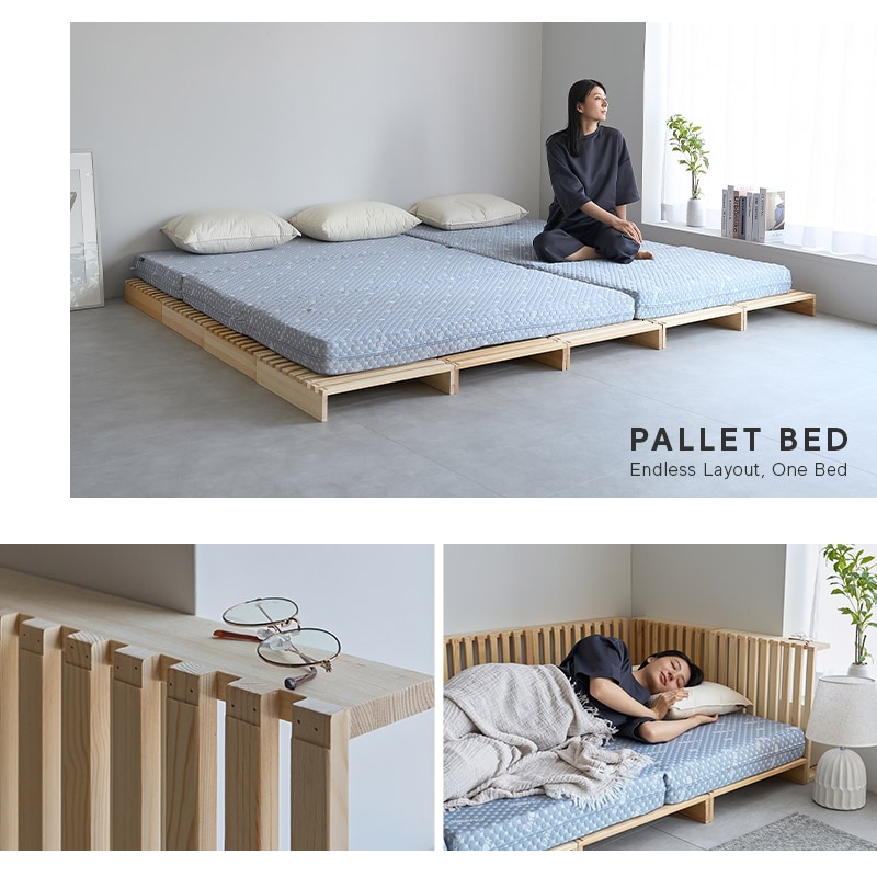 パレットベッド すのこベッド 正方形 連結パーツ付き 分割式 組み換え自由 シングル セミダブル ダブル クイーン キング 連結ベッド 軽量 ベッド パレット ベット 木製 ベッドフレーム ファミリーベッド ローベッド すのこ スノコ 収納 来客 新生活 送料無料 エムール