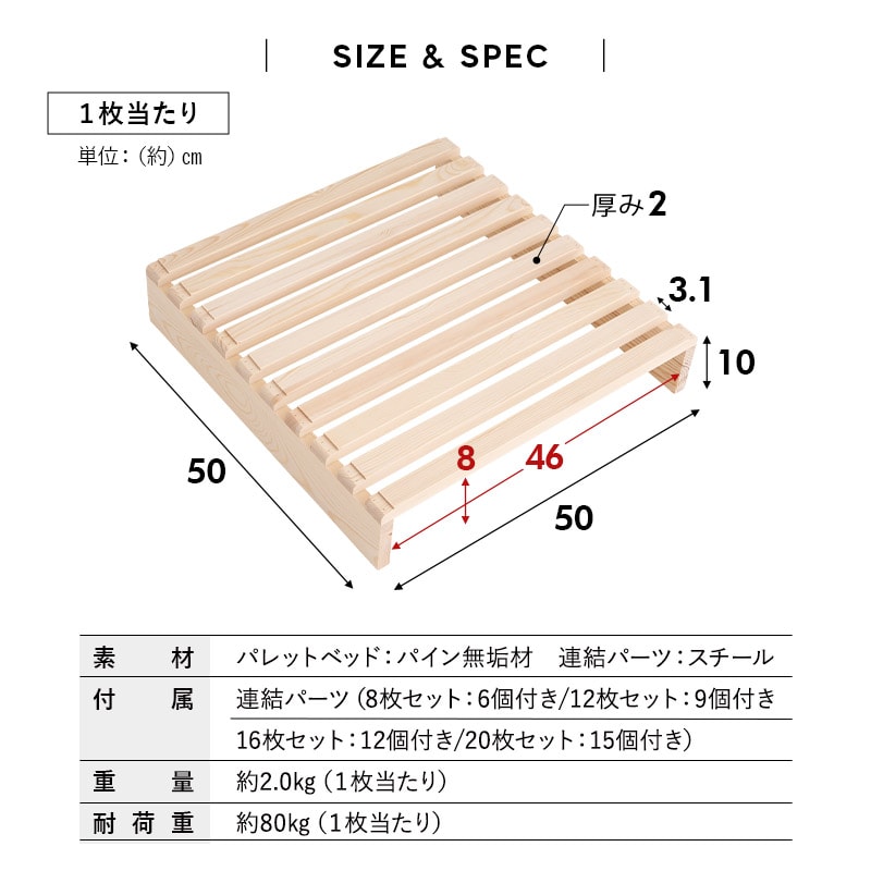 | 品名 | 自由に組み換えできる パレットベッド 選べる8/12/16/20枚セット |