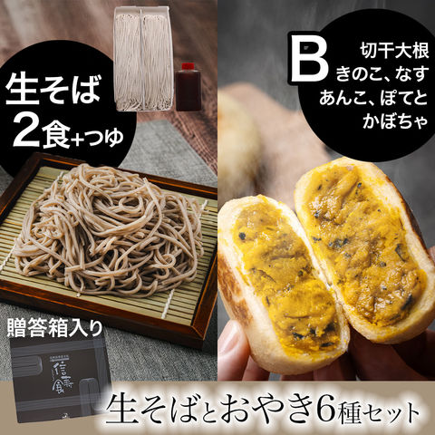 手打ち生そば2食+おやき6種セットB[焼]【贈答箱】(きのこ ポテト あんこ なす 切干大根 かぼちゃ) 年越しそば 送料無料