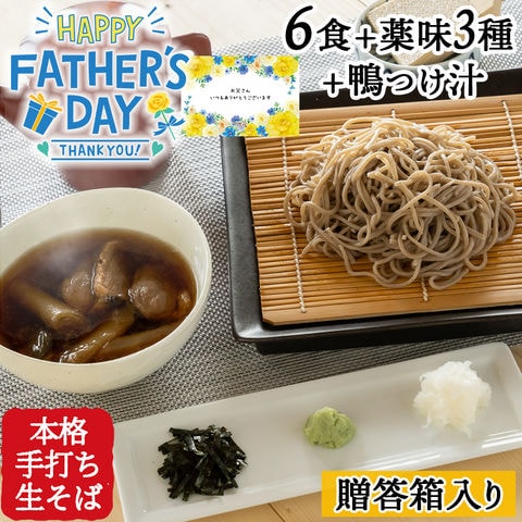 信寿そば6食+薬味3+鴨【贈答箱】(父の日カード) 送料無料