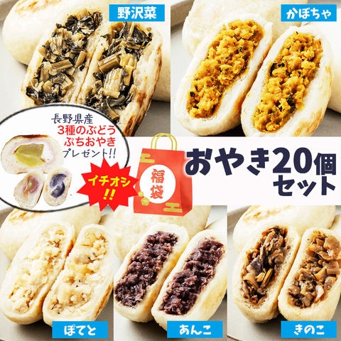 【福袋】\おまけ付き/おやき20個(5種×4)セット(野沢菜 きのこ あんこ ポテト かぼちゃ)