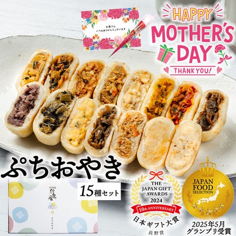ぷちおやき15種セット[箱](母の日カード)(野沢菜 きのこ やさい ポテト あんこ なす 切干大根 にら かぼちゃ トマト チーズ カレー 春雨 ホワイトチョコ りんご ) 送料無料