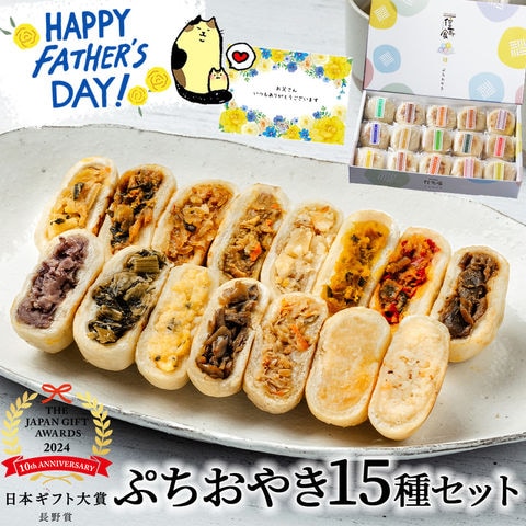 ぷちおやき15種セット[箱](父の日カード)(野沢菜 きのこ やさい ポテト あんこ なす 切干大根 にら かぼちゃ トマト チーズ カレー 春雨 ホワイトチョコ りんご ) 送料無料