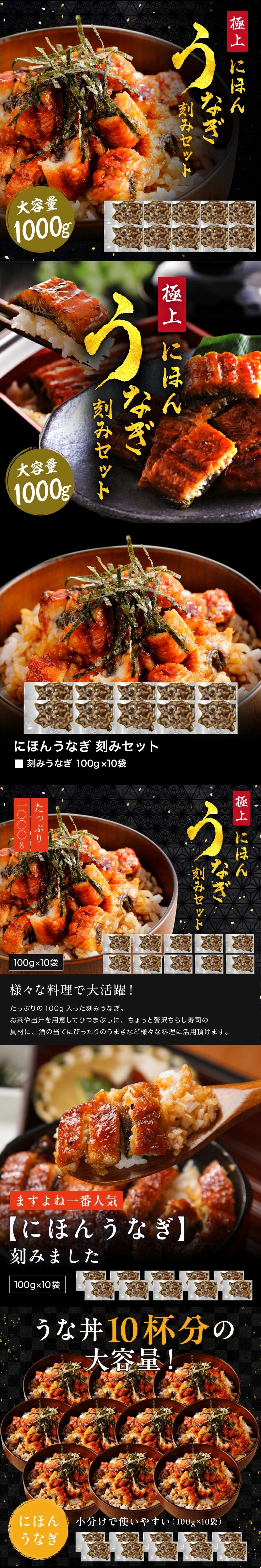 大盛 刻みにほんうなぎ蒲焼き 1kg (100g×10袋)【原材料名】