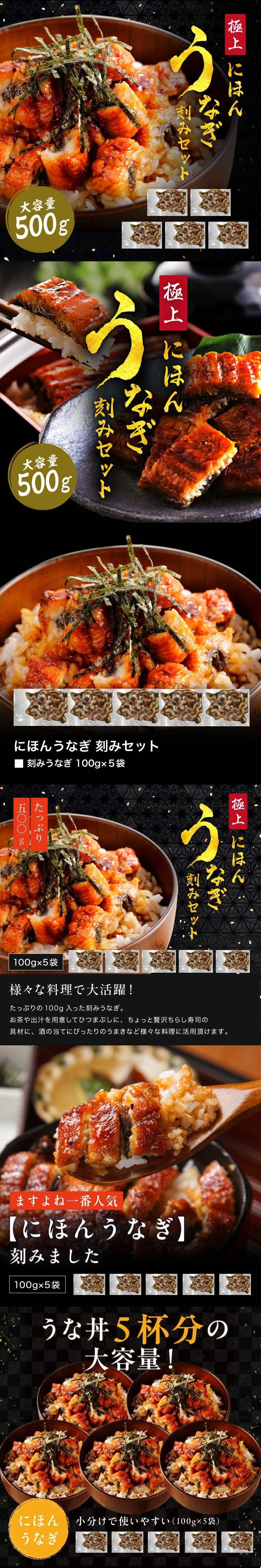 大盛 刻みにほんうなぎ蒲焼き 500g (100g×5袋)【原材料名】