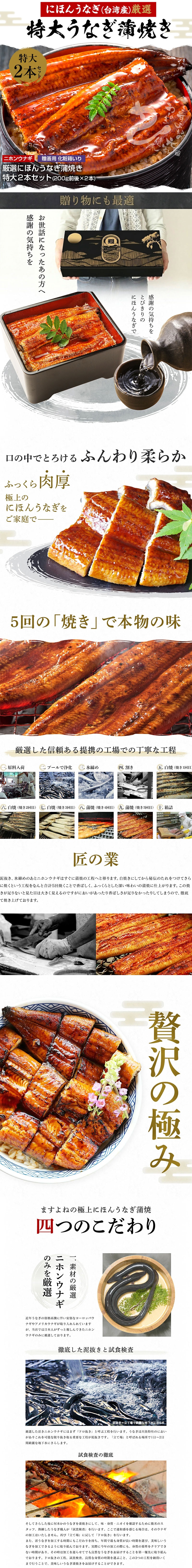 にほんうなぎ蒲焼き 200g前後×2尾セット【原材料名】