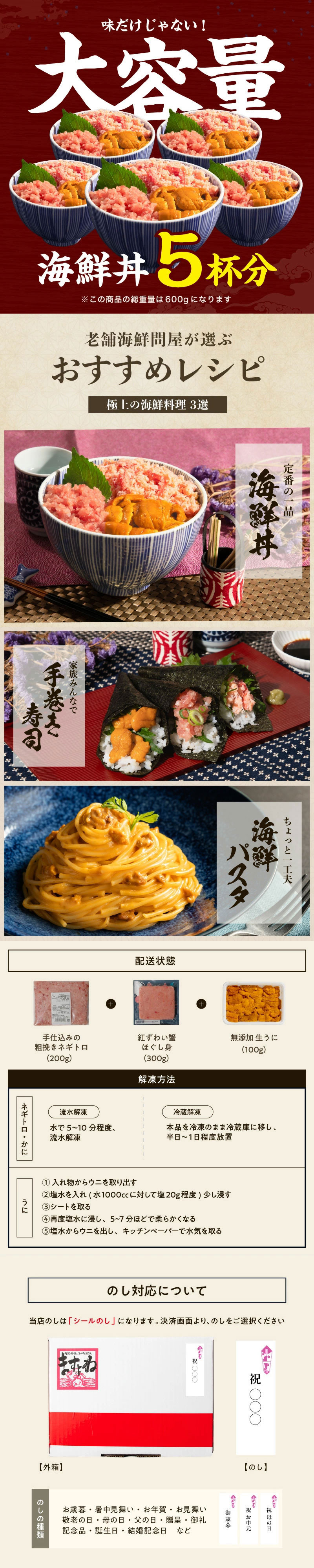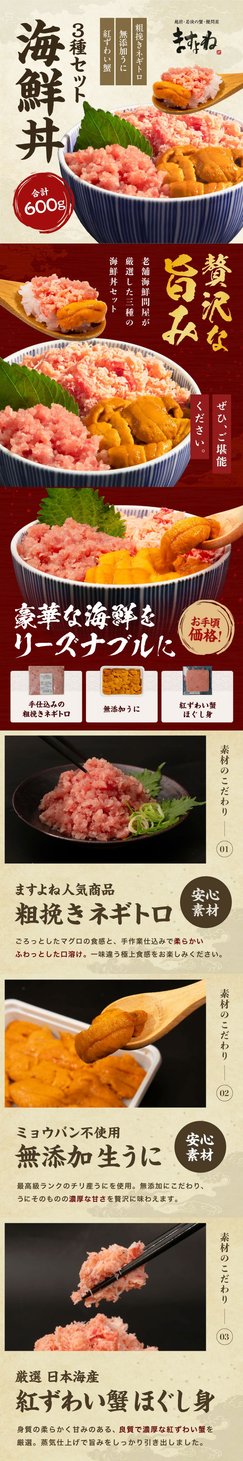 3種の海鮮丼セット ~うに・ネギトロ・蟹~ 計600g(約5杯分) 豪華海鮮 ウニ 雲丹 ねぎとろ かに カニ 紅ずわい お中元 お歳暮 ギフト ますよね
