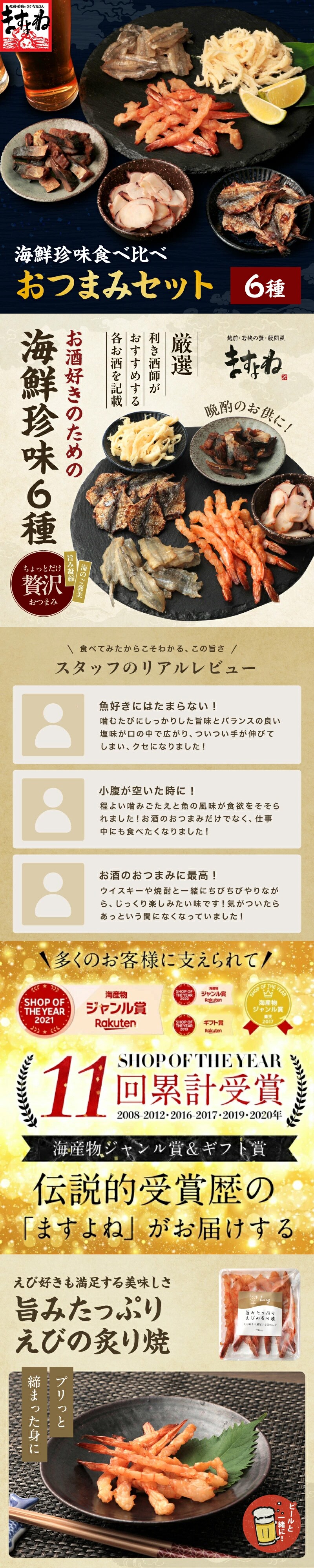 海鮮珍味6種セット おつまみセット 珍味詰め合わせ いか えび さば あじ いか焼き 魚ジャーキー 海鮮おつまみ 晩酌のレビュー