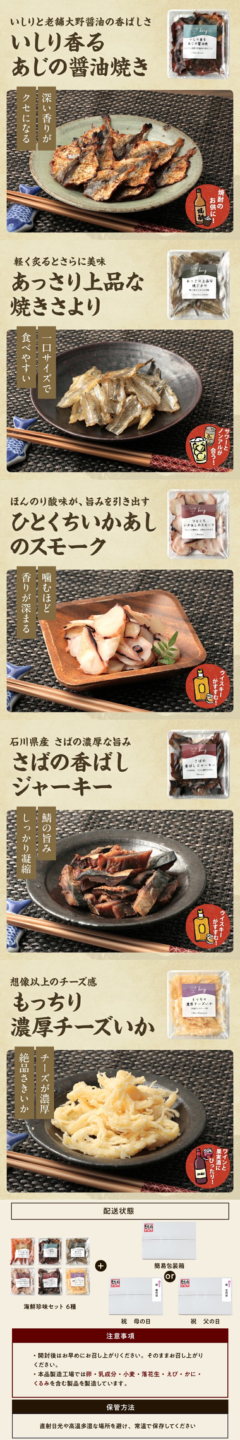 海鮮珍味6種セット おつまみセット 珍味詰め合わせ いか えび さば あじ いか焼き 魚ジャーキー 海鮮おつまみ 晩酌