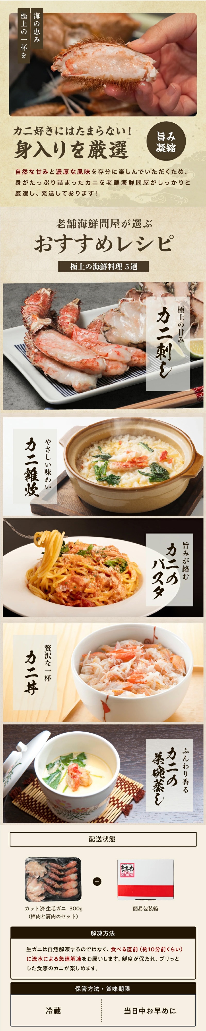 かに カニ 蟹 カット済み 生毛ガニ 300g ポーション かにしゃぶ むき身 ギフト お取り寄せ ますよね
